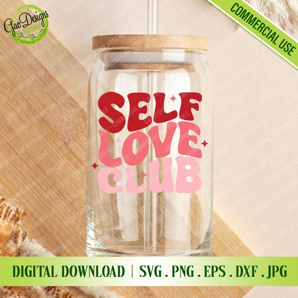 Self Love Club SVG, Groovy Valentine Shirt Design, Retro Wavy Text PNG, 70s Vintage Mental Health Quote for Cricut & Sublimation