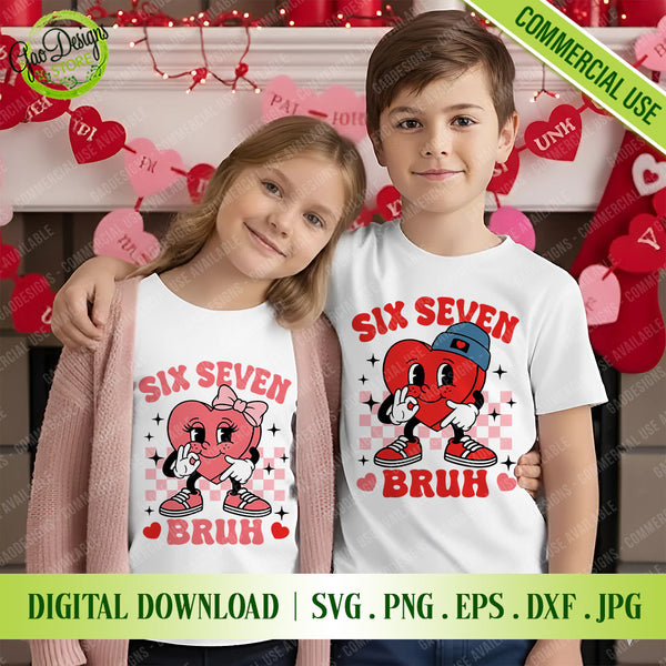 Looking for the coolest Classroom Valentine trend for middle schoolers? "Six Seven Bruh Bundle" is the perfect funny duo design for the 6th and 7th-grade crowd. Featuring trendy retro mascot hearts with checkerboard vibes, this bundle covers both boys and girls. Save your design time and start selling immediately with these professional, ready-to-cut files. Perfect for creating matching Couple T-shirts, Hoodies, Stickers, and Class Gifts that stand out on Etsy or Amazon.